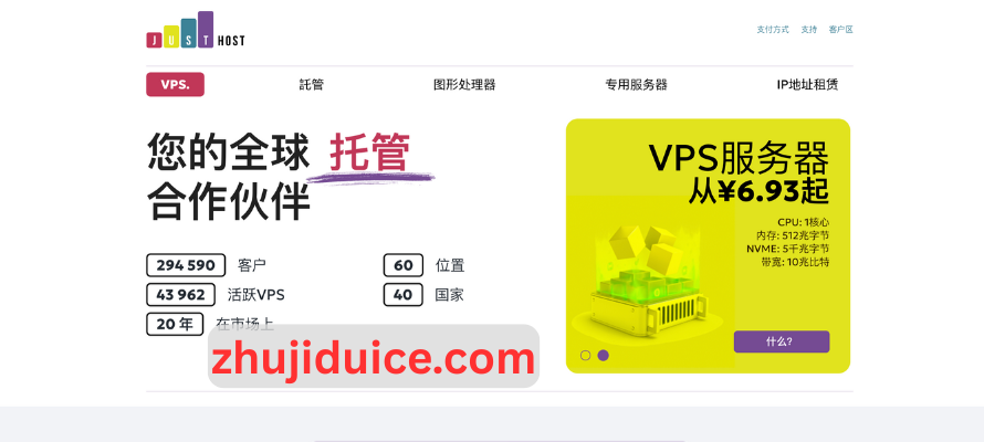 JustHost 是一家成立于 2006 年的老牌俄罗斯服务器商家,之前主要提供俄罗斯便宜 VPS,后来又上线了多个全球机房,包括美国机房、欧洲机房、中国香港机房等,截至目前,JustHost 全球一共有 41 个数据中心。JustHost 支持支付宝、PayPal,以及多种加密货币支付,价格便宜,月付不到 10 元起,有 15 天退款保证。