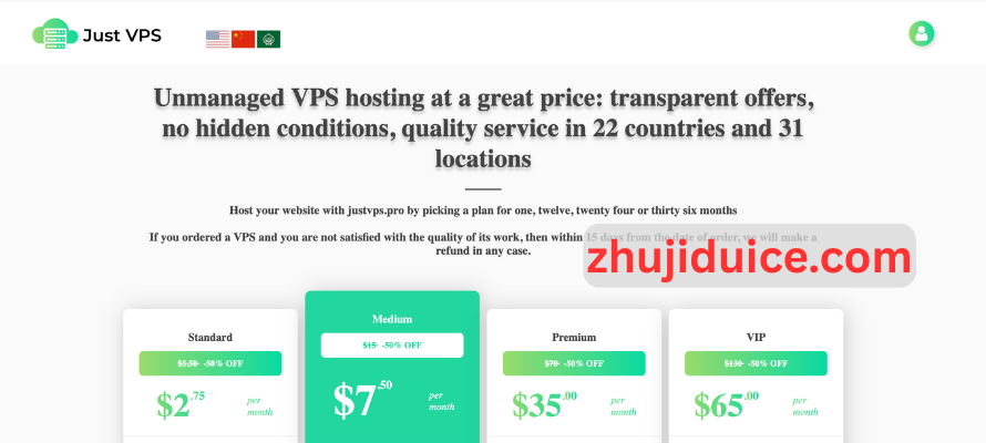 一、JustVPS 官网